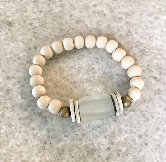 Stack Bracelet with Recycled Glass and Bone Beads