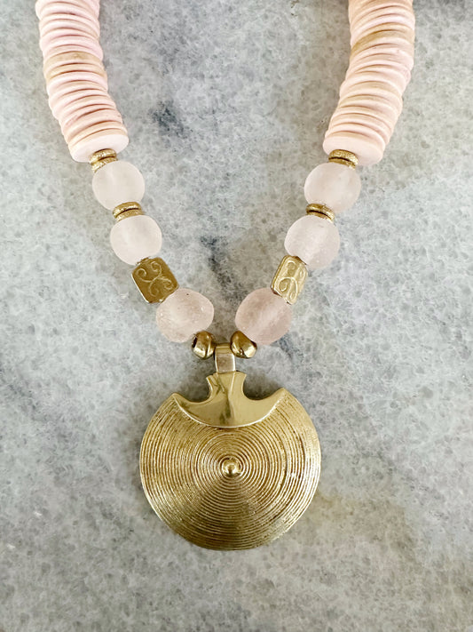Pink Coconut, Bone and Pale Pink Recycled Glass Necklace