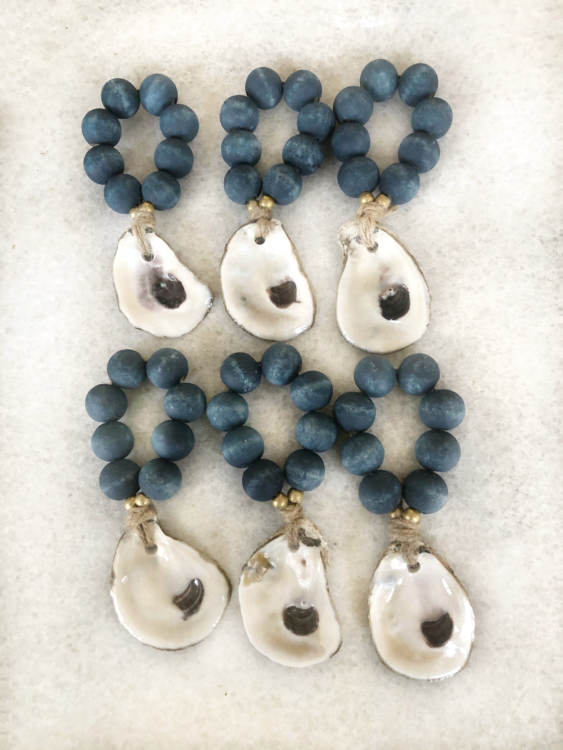 Oyster napkin rings provide a perfect coastal vibe for your dining table. Pair with your favorite dinner napkin, a placemat or charger, dinner plate, salad plate and even a bit of greenery to finish the look.