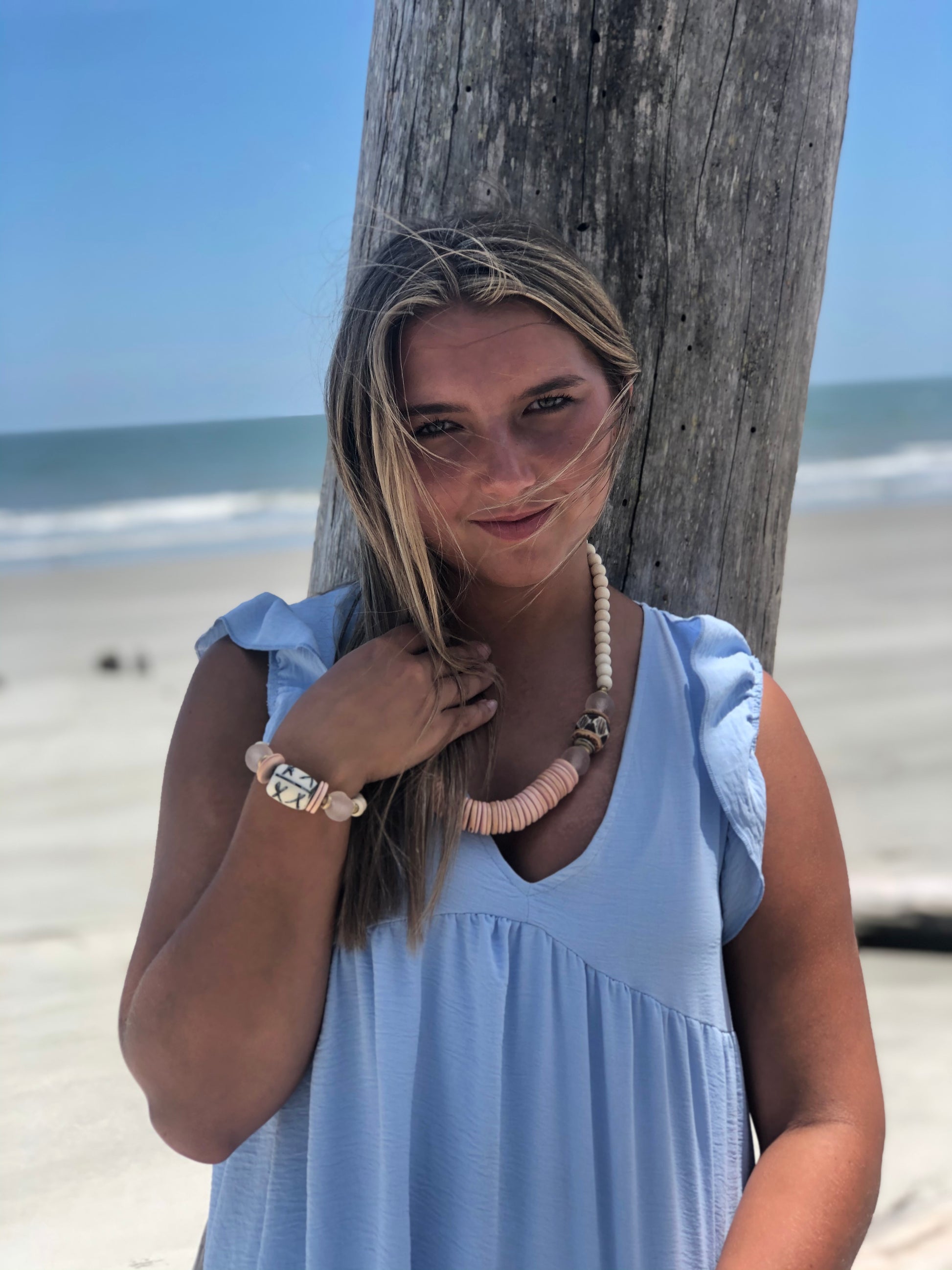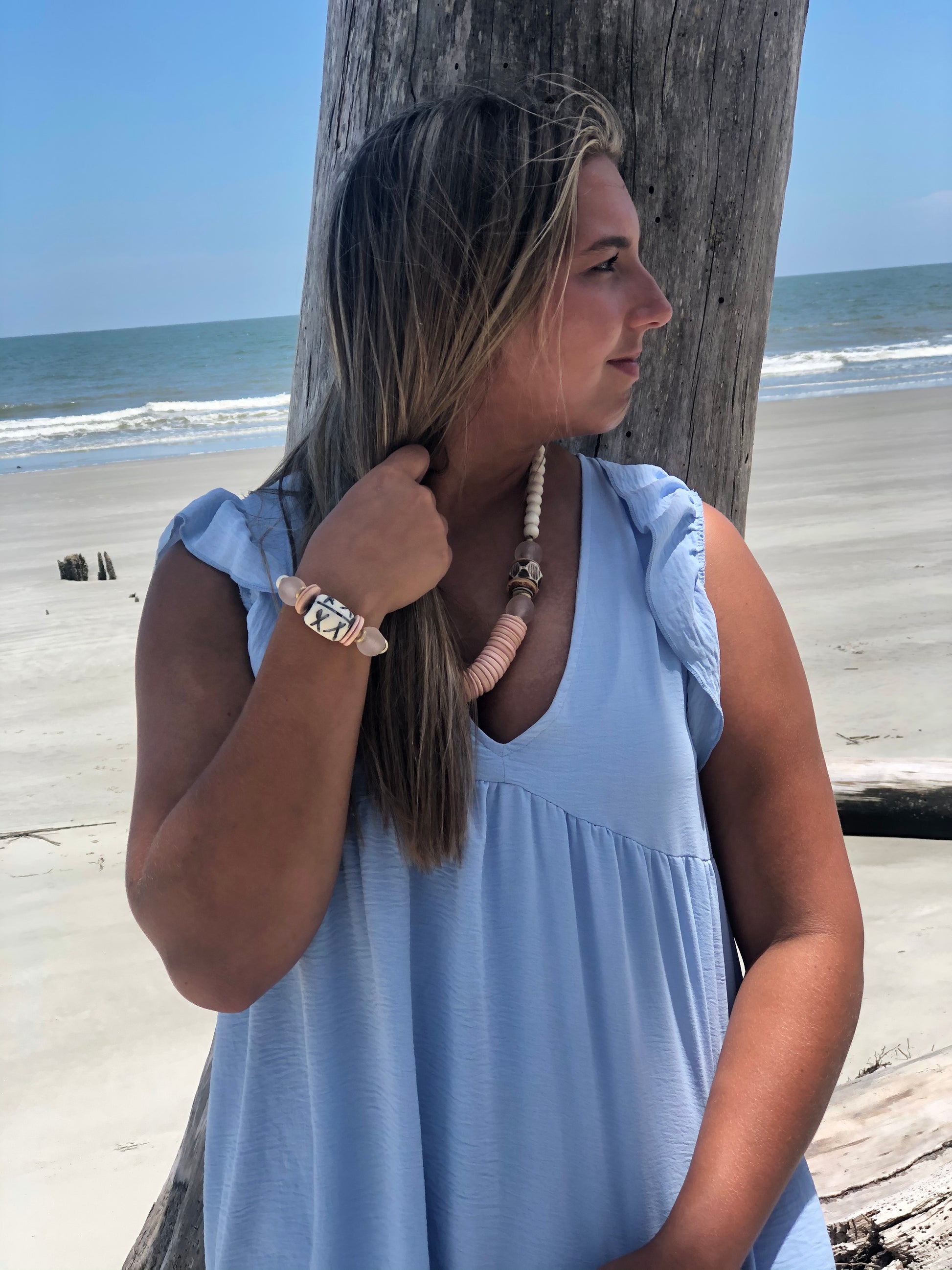 Pink Coconut, Bone and Pale Pink Recycled Glass Necklace