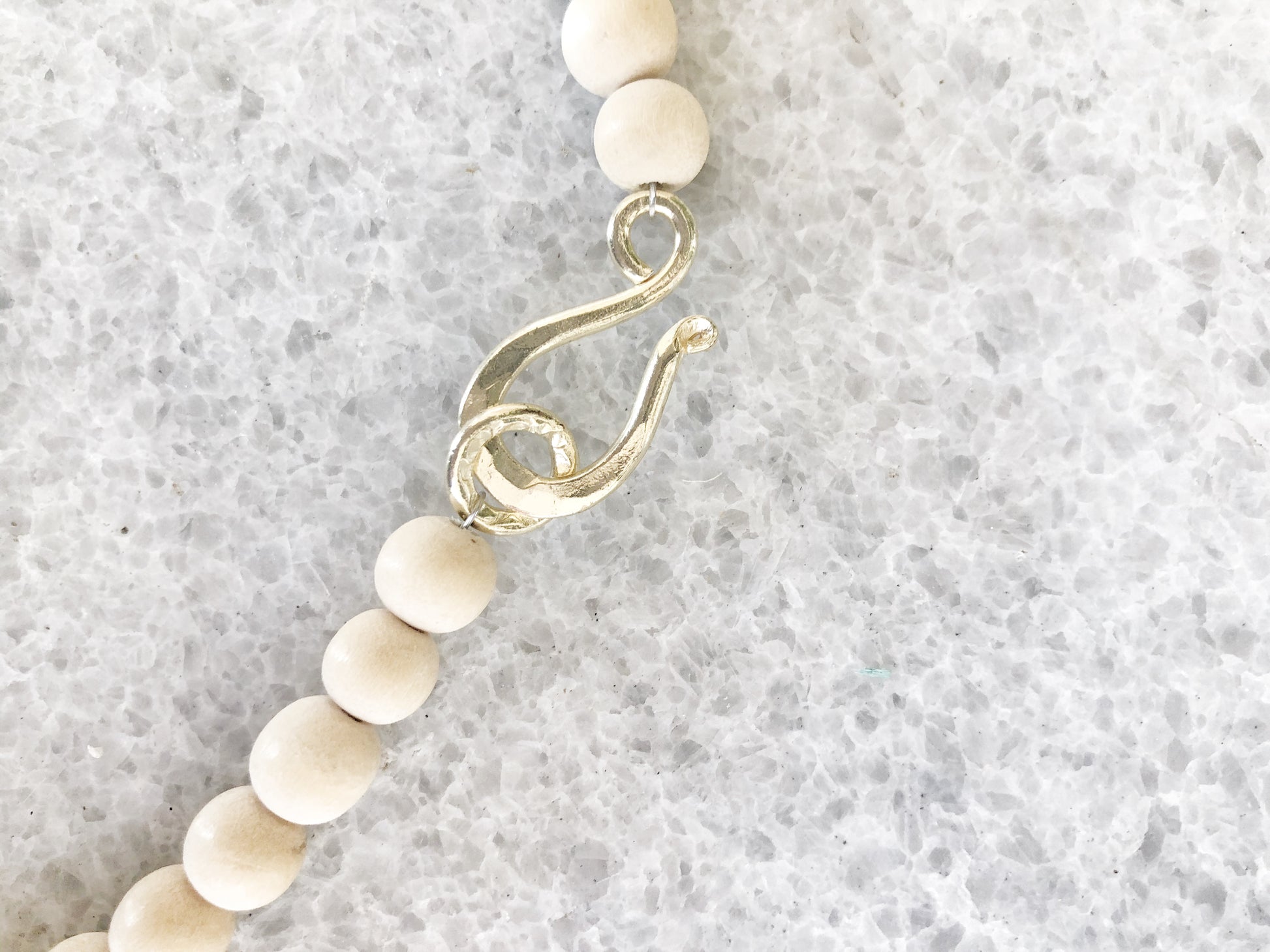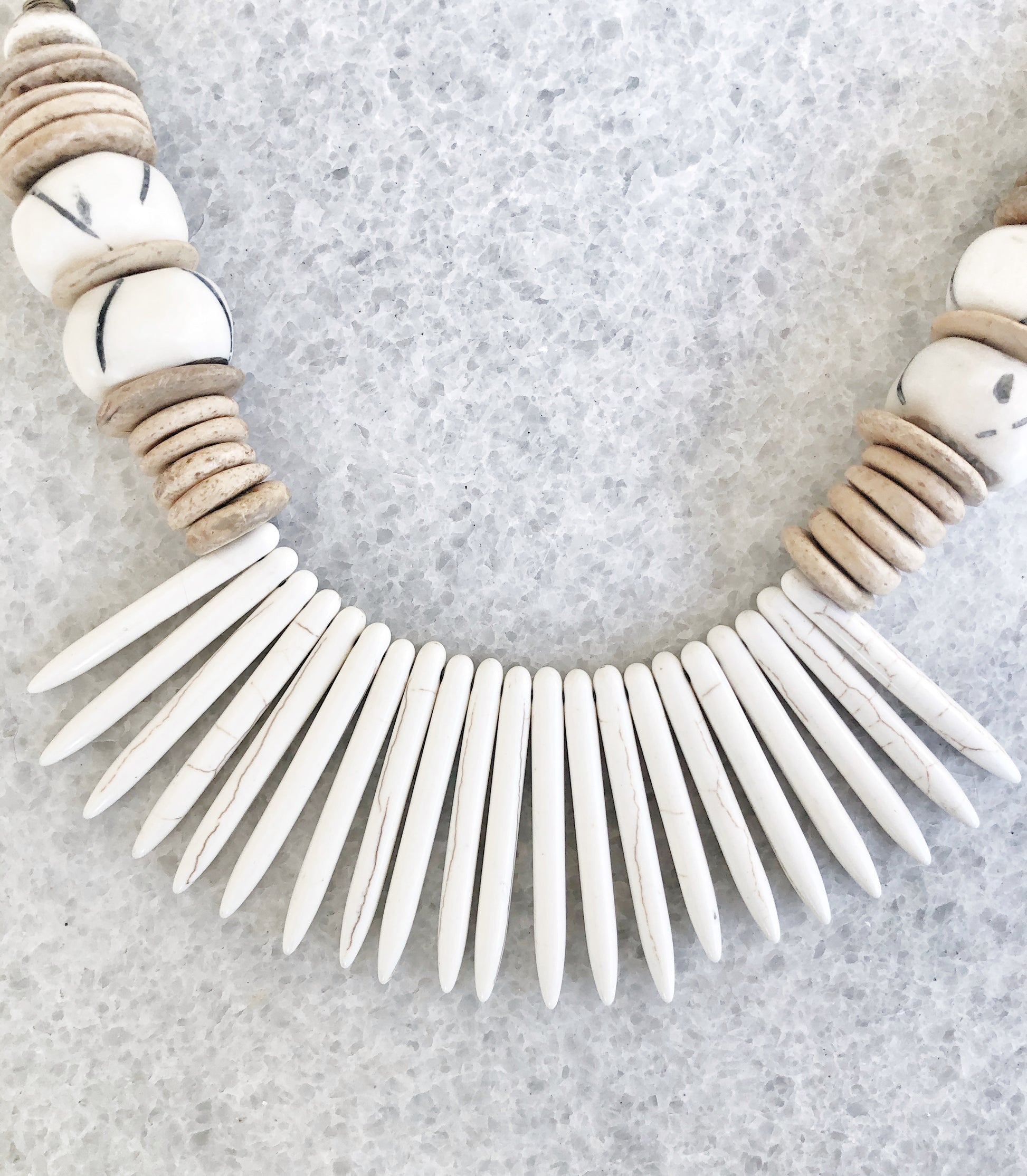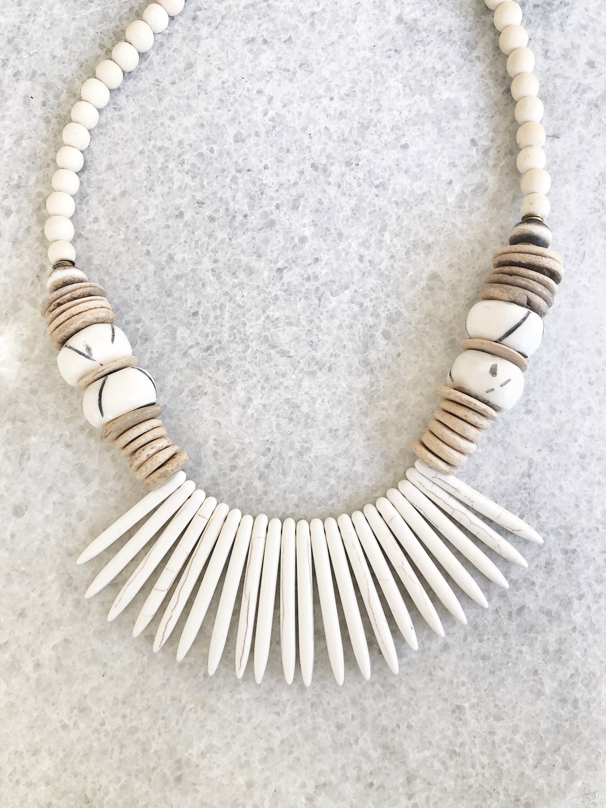 White Magnesite Spike and Coconut Necklace with Hand-Carved African Bone